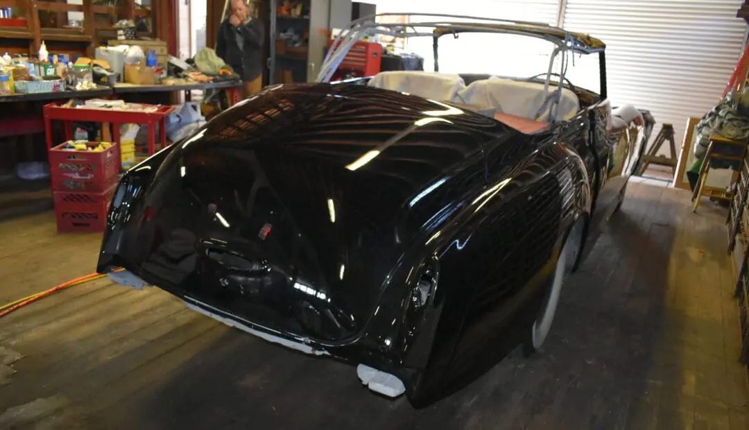 A rust-free restoration project, the car remains complete and largely original, with its replacement motor, gearbox, suspension, and brakes already done. It runs smoothly, and the remaining parts have been marked and boxed for reinstallation as the restoration is completed. Gloria Swanson’s Cloud I, with its rebuilt mechanics ready to be completed, $49k.