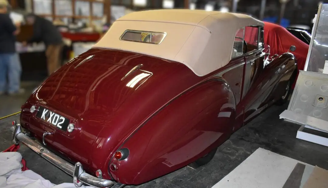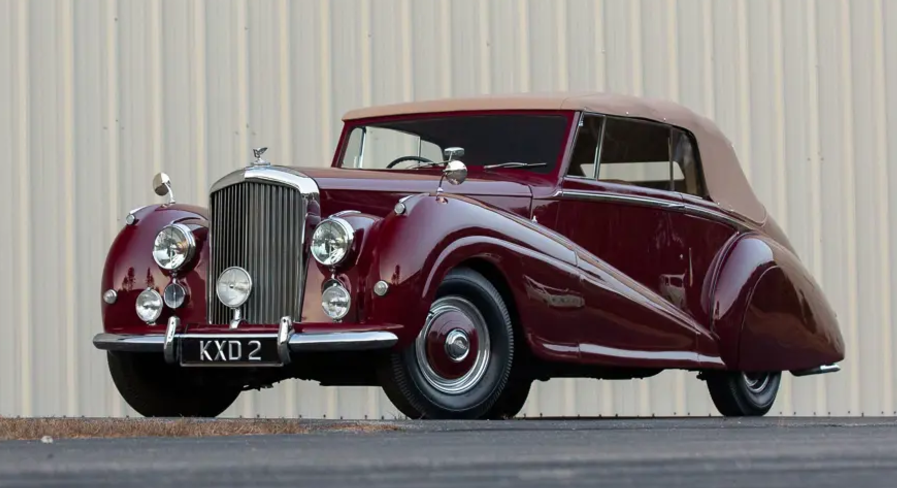 This 1952 Bentley Mark VI Drophead Coupe by Park Ward is believed to be one of just 57 built and retains its numbers-matching engine according to the Bentley build sheet. Ordered new for Miss Marjorie Carnegie through W.M. Couper Ltd., it features custom details including a scuttle aerial and fog lamp. An older restoration in a beautiful color combination, the car presents well today and is accompanied by its tools, build sheet, and Schoellkopf card.