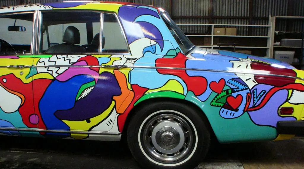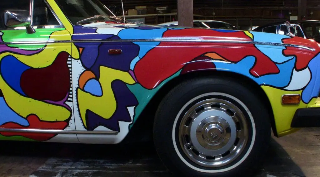 This 1979 Rolls-Royce Silver Shadow II Art Car is a one-of-a-kind left-hand-drive example hand-painted by artist Marcie Ziv. Previously part of a collection in Kobe, Japan, it was acquired and brought back to the United States about four years ago. The car retains its original body panels, shows no evident collision damage, and, while currently unattended for several years, remains a striking centerpiece of The Imagine Collection.